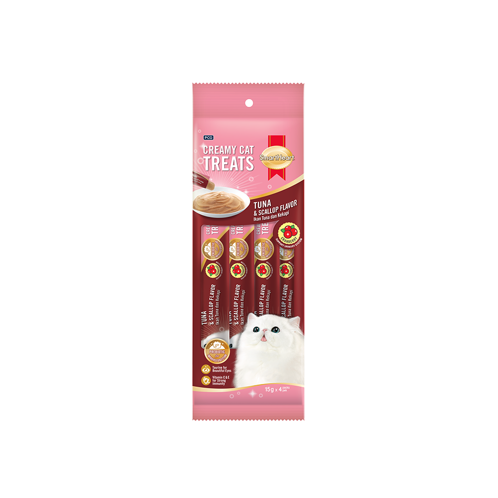 SmartHeart Cat Creamy Treats Cranberry Tuna & Scallop 15g x 4