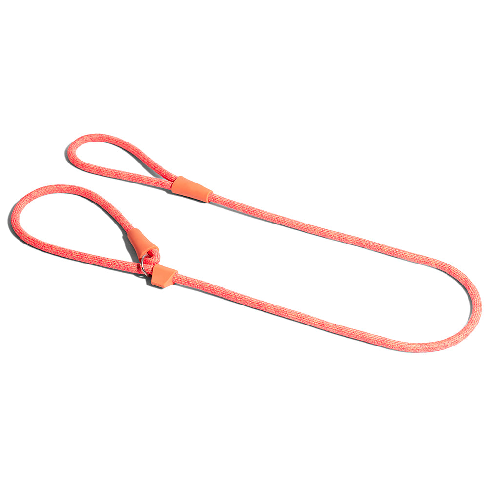 This slip on dog leash combines collar and leash in one adjustable, easy-to-use piece. Great for use during training, for difficult-to-train dogs, and for dogs adjusting to a collar or regular leash. Soft, pliable polyester rope, one size fits all.