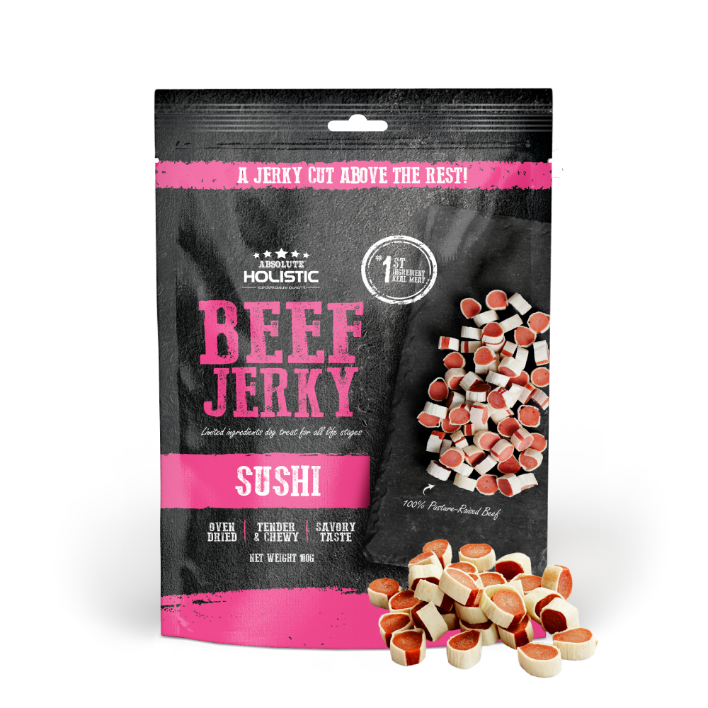 Absolute Holistic Dog Treats Beef Jerky Sushi 100g