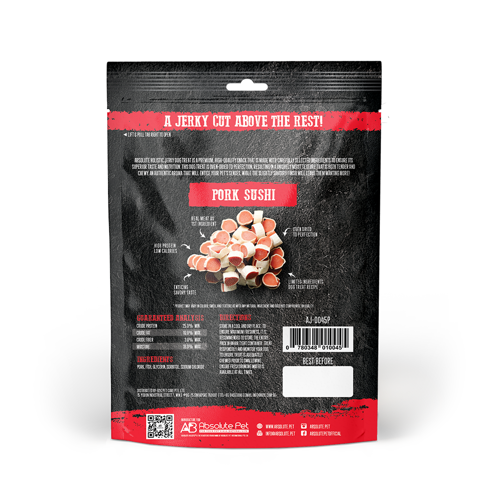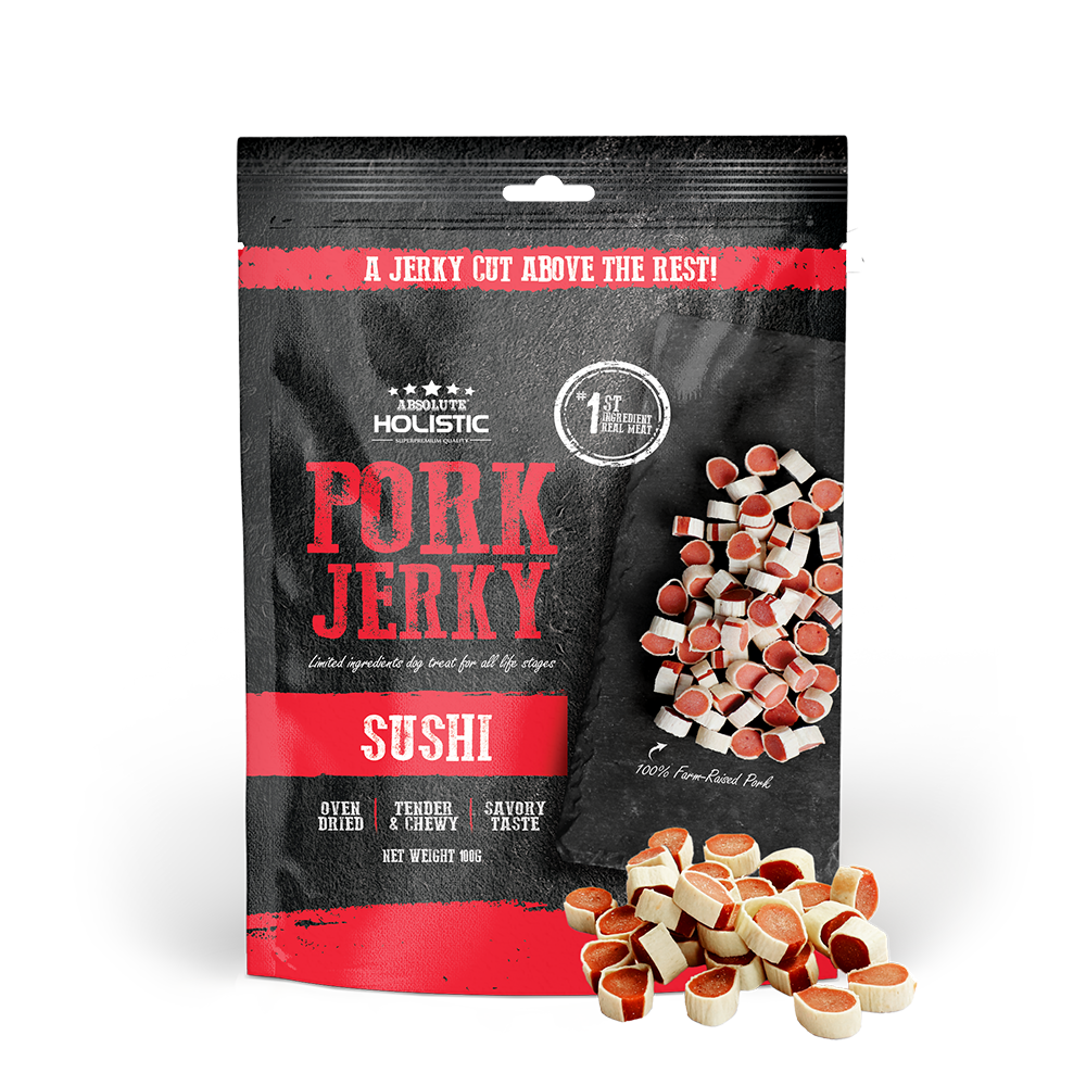 Absolute Holistic Dog Treats Pork Jerky Sushi 100g
