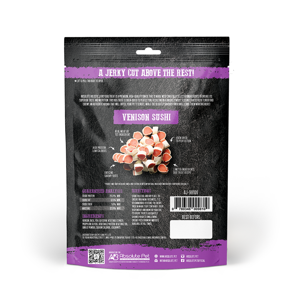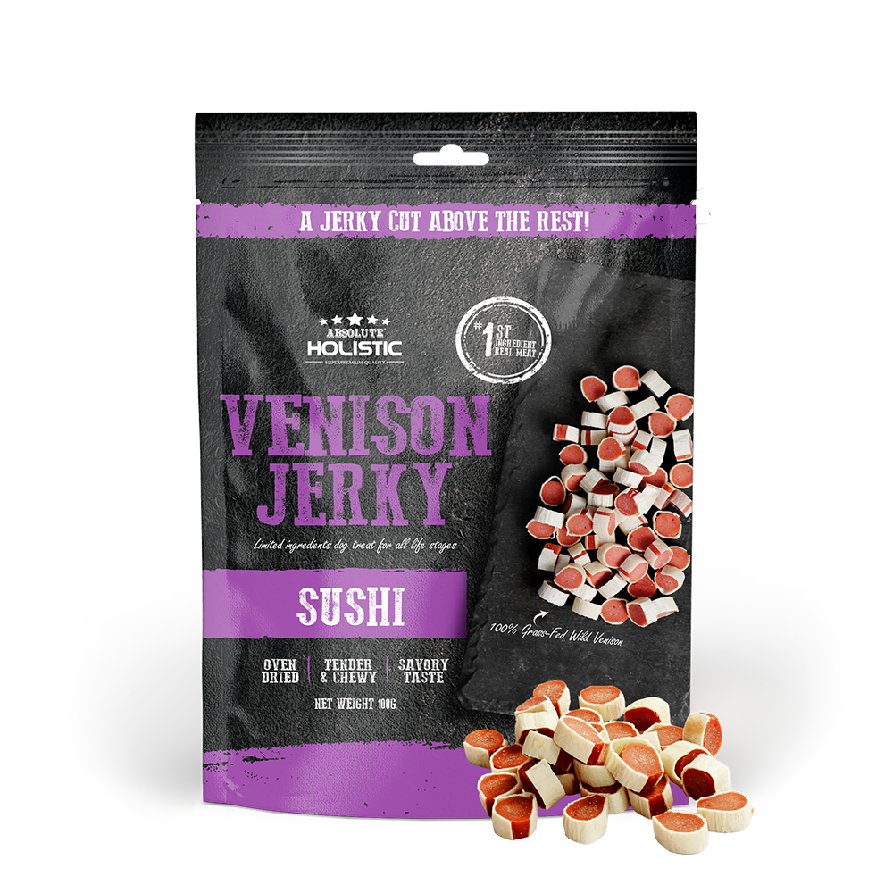 Absolute Holistic Dog Treats Venison Jerky Sushi 100g