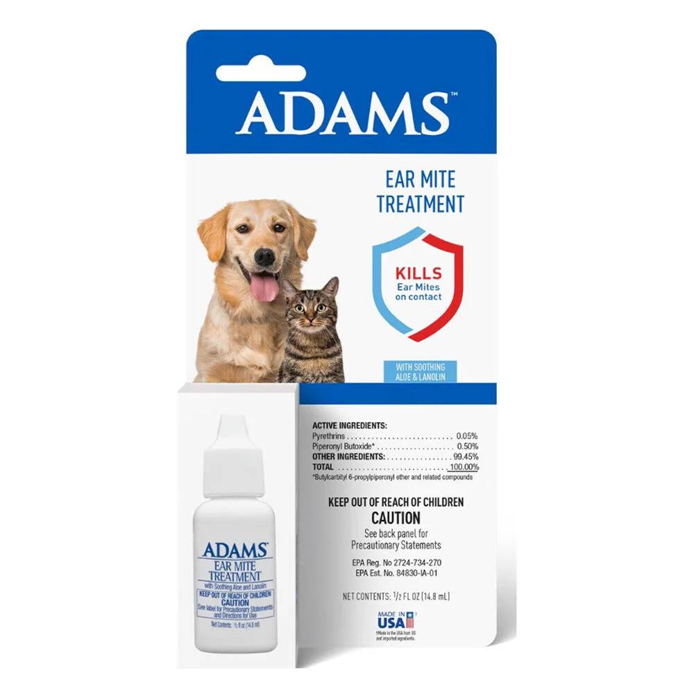Adams Ear Mite Treatment offers relief for dogs and cats suffering from ear mites. It contains aloe to help soothe irritated skin and kills ear mites on contact. The easy-to-use applicator tube makes it easy to treat your cat or dog's ears.