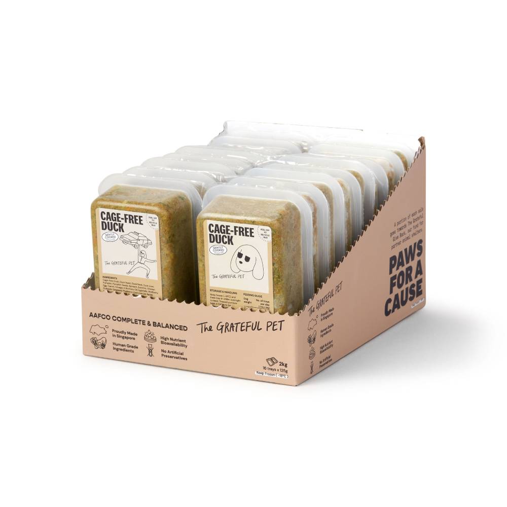 Packed with plenty of nutrients, our complete & balanced gently cooked meal for dogs is made with only the good stuff: quality cage-free duck muscle meat, offal, fresh vegetables, botanicals and superfoods. It is 100% fresh and all-natural. No prep, no nasties and no mystery meat – just super great food for super great dogs.