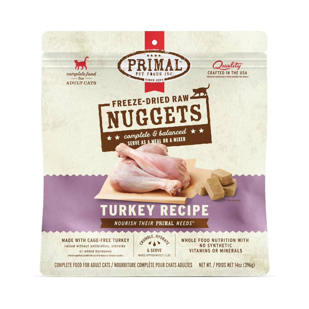 Keep your pet in their prime with high-quality freeze-dried raw recipes crafted with real, whole foods that deliver optimal nutrition and digestibility. Primal Pet Foods has pioneered raw nutrition for over 20 years and we remain steadfast in our mission to honor pets' ancestral, biological needs. Primal Freeze-Dried Raw Nuggets are shelf stable and easy to use, so you can nourish your cat with the nutrition they deserve in a safe and convenient format.