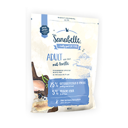 Sanabelle Adult with trout is a wholesome and tasty complete food for needs-based nutrition of adult cats. As a special protein source, the trout serves as a flavor variant and at the same time ensures exceptional protein quality.