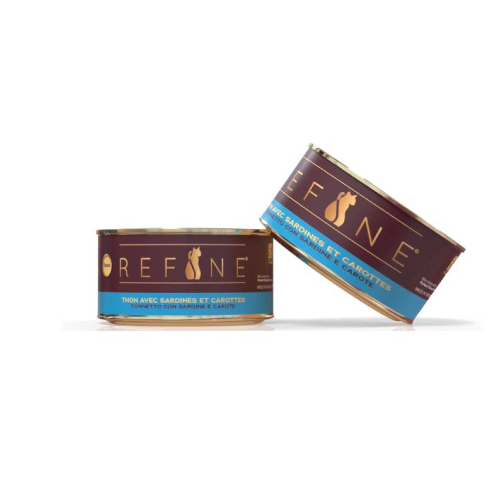 The REFINE Classic Tuna with Sardines & Carrots consists of high-quality tuna and sardines - both rich in Omega-3 fatty acids to help support heart health, a strong immune system, and a shiny coat. Carrots provide natural fibre to promote healthy digestion.