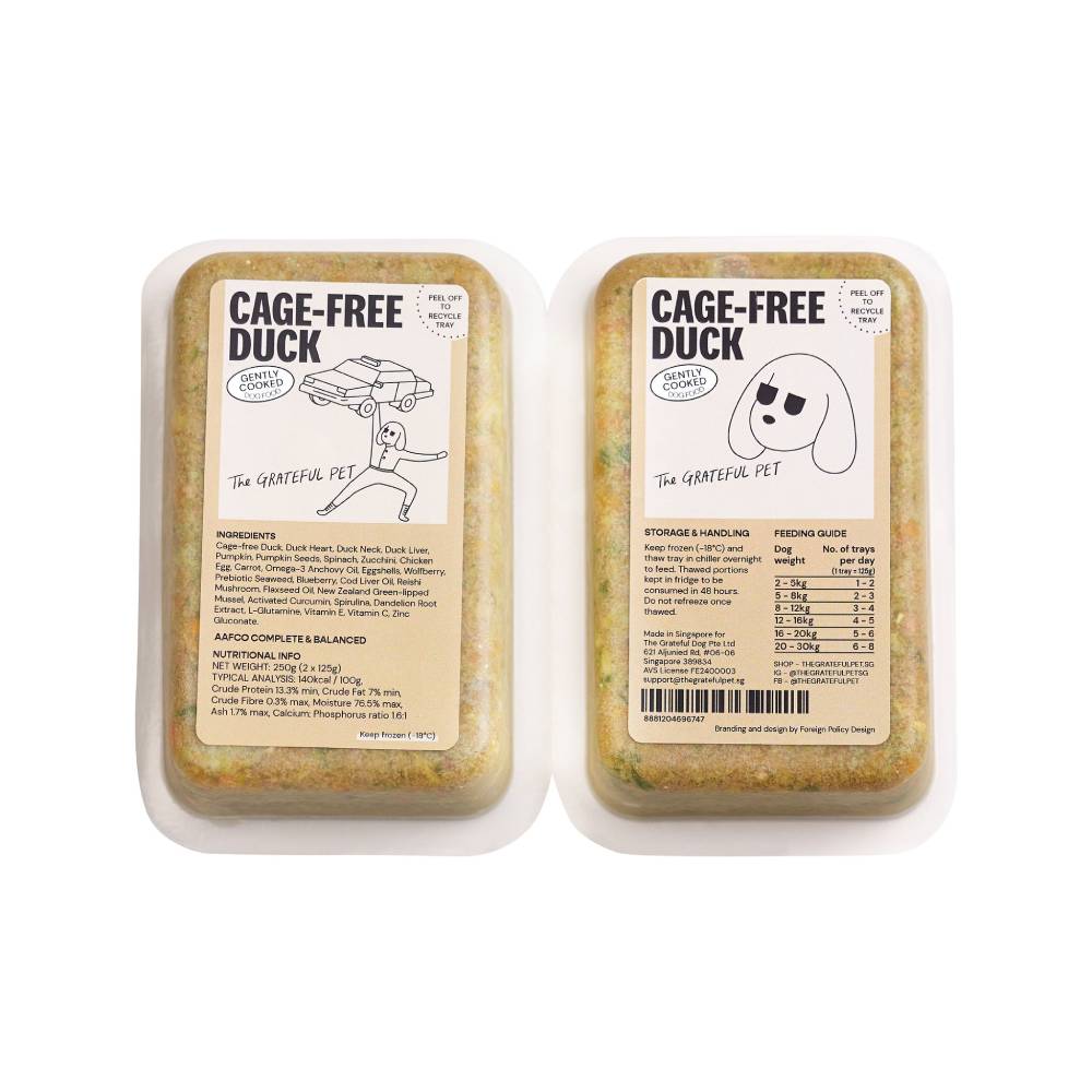 Packed with plenty of nutrients, our complete & balanced gently cooked meal for dogs is made with only the good stuff: quality cage-free duck muscle meat, offal, fresh vegetables, botanicals and superfoods. It is 100% fresh and all-natural. No prep, no nasties and no mystery meat – just super great food for super great dogs.